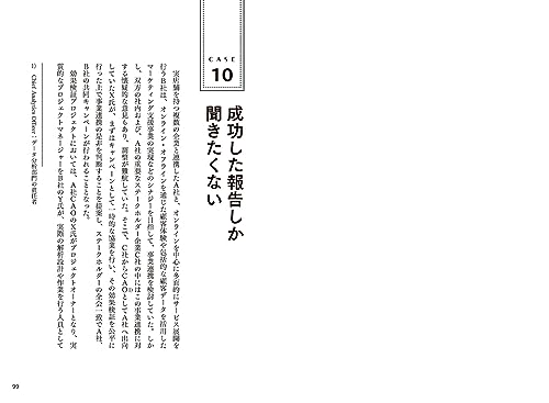 いずれの事例も生々しい実情が描かれており、データ分析のプロジェクトを進めたことがある方なら共感できる内容となっています。何かのボタンの掛け違えでプロジェクトが転落していくさまがありありと描かれており読み物としても面白いのですが、それ以上に自分がPMだったら…と考えながら読み進めると分析プロジェクトの経験値を高める一助になるでしょう。