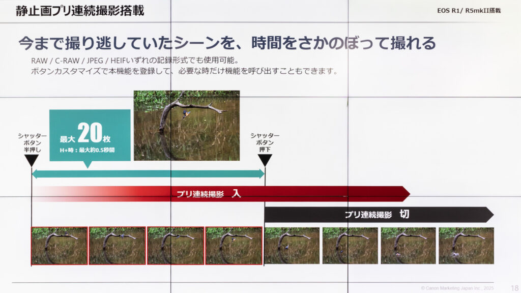 主要な想定ターゲットとして、同クラスからの買い替え層を狙っています(ターゲット①)。これまでのEOSR6、Rはもちろん、3250万画素と高画素化が進んでいるため、レフ機の5DMkIVや6DMkIIからの乗り換えも想定されていることがポイントでしょうか。
