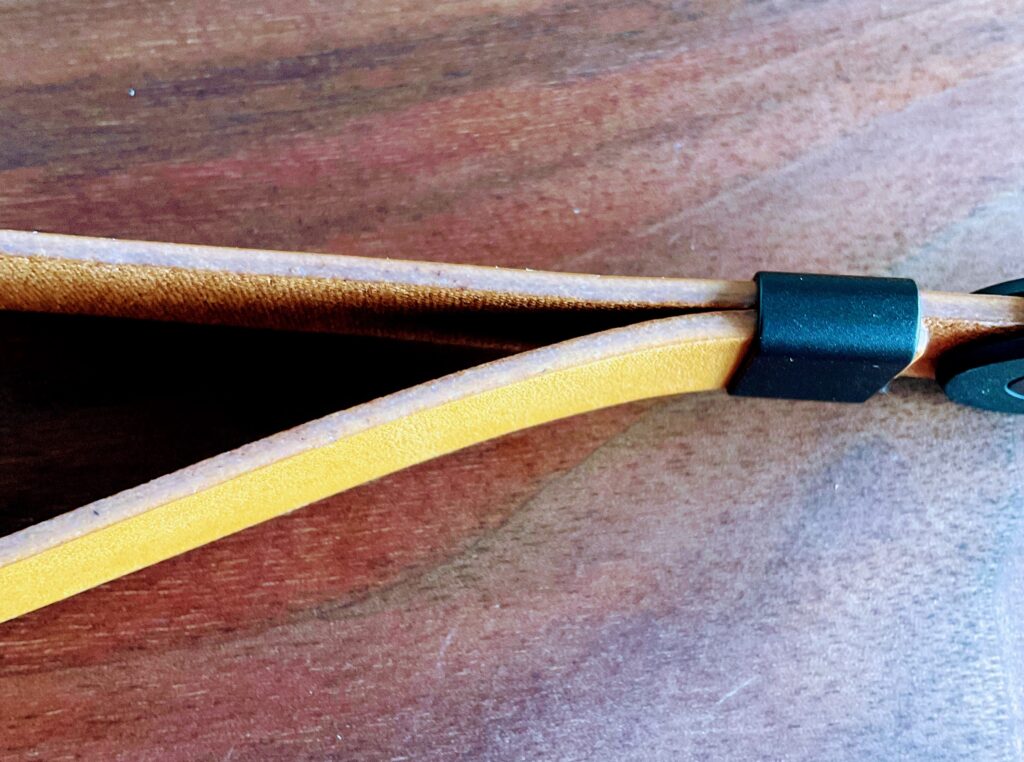 従来品はベルト内にマグネットが挿入されており、カメラに接続していない場合はマグネットで腕に巻き付けることができましたが、新型のレザーカフはこれらの機能は装備されていません。